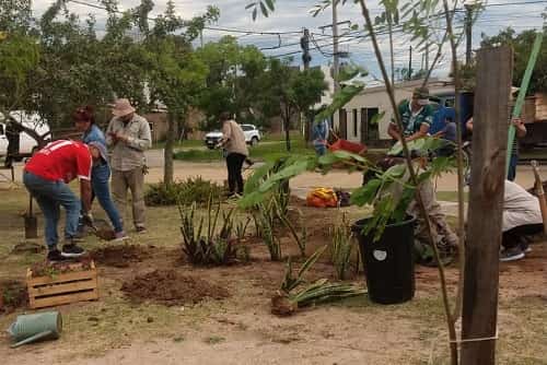 Se plantaron tipas, chivatos y plantas decorativas. Se dejaron los pozos preparados para continuar con la tarea en días venideros.