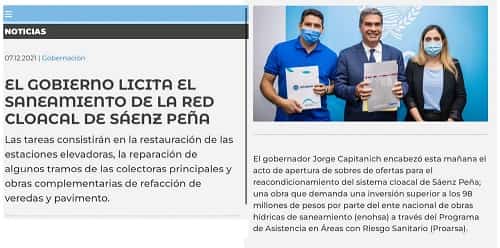El 7 diciembre del 2021 Jorge Capitanich siendo gobernador, acompañado de las autoridades locales de Sameep y de la entonces concejal y ya perfilada precandidata a intendente del PJ Luisina Lita, anunciaba la licitación del saneamiento cloacal de la ciudad Termal por 98 millones de pesos a través del Enohsa y Proarsa.